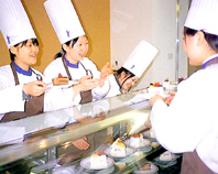 洋菓子・和菓子・製パンの技術に加え、お客様へのサービスも学習します。